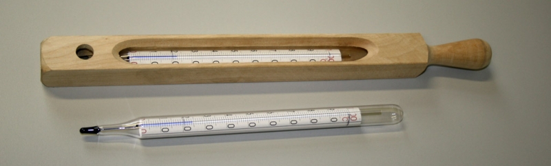 Termometry w drewnianej obudowie do badania temperatury wody podczas odparzania wędlin. Nadają się również do pomiary temperatury wewnątrz kotła podczas wędzenia a dzięki drewnianej obudowie jest odporny na uszkodzenie. Nawet wprawne oko rzeźnika nie jest w stanie określić odpowiedniej temperatury przy wędzeniu czy odparzaniu wędlin. Określić to możemy za pomocą oferowanego termometru. Termometry te nie zawierają rtęci dlatego są bezpieczne dla mięsa nawet w przypadku uszkodzenia.